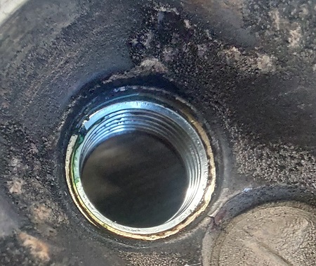 The club house of the local motor club was next to the camping site and Patrick and Roger, two mechanics of this wonderful club, repaired the threaded hole by replacing it with a helicoil.